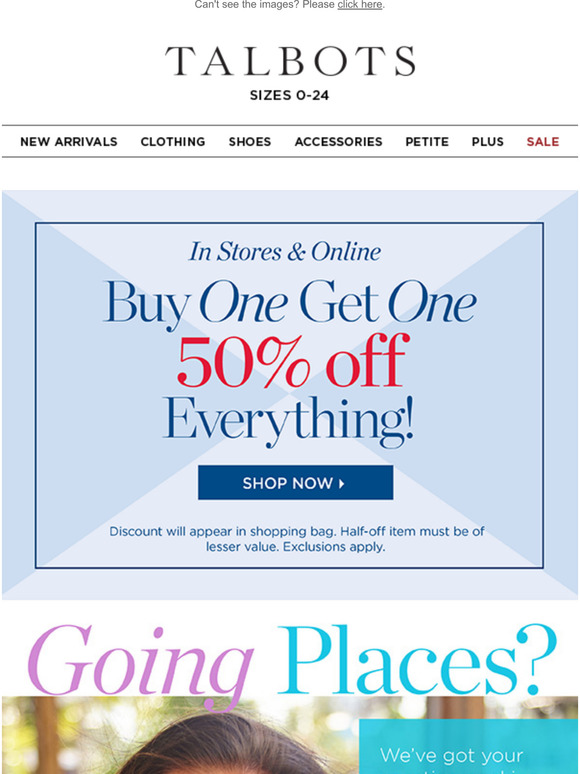 $50 Off Talbots Coupons & Promo Codes | September 2022 - BrokeScholar $50 Off Talbots Coupons & Promo Codes | September 2022 Talbots Coupons & Promo Codes for September 2022 Save with these Talbots discounts and coupon codes - 37 active codes $50 Off Code Get $50 Off at Talbots Save $50 When You Spend $200 Or More Sitewide Reveal Code Ends Nov 7th Save Now Talbots on eBay eBay Sale: Discounts on Talbots