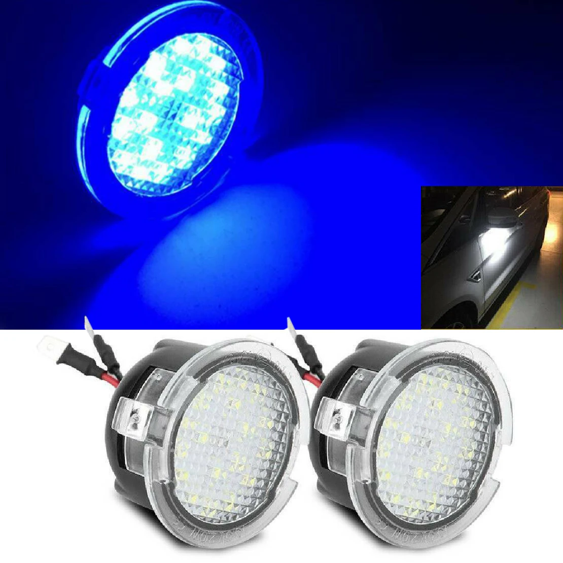 2Pcs/Set Car Blue Full LED Under-Mirror Puddle Lights Fit For Ford F-150 Edge Flex Taurus Toyota Sequoia Tundra Lincoln MKS MKT