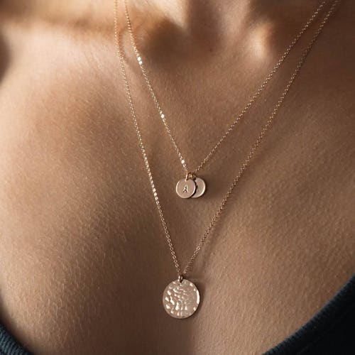 Layered and Long Necklaces, Personalized Layering Necklace Set of 2 - Rose Gold Necklace with Initials - Layered Necklaces - LS965