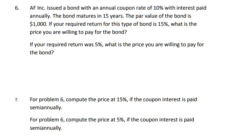 How to Calculate Bond Total Return: 3 Ways to Assess the ... - wikiHow Nov 05, 2020 · In either case, you still receive interest payments based on the face value and coupon rate of the bond. The annual interest payments on the bond are $50,000 ($500,000 * .10 = $50,000). When a bond matures, you get the face value of the bond. Whether you bought the bond at a discount or a premium, upon maturity you receive the face value. Fortune - Fortune 500 Daily & Breaking Business News | Fortune The Best MBA Programs in 2022 Fortune Education wants to help you decipher the best of what the business school landscape has to offer. Discover which 76 schools made our second annual ranking of ... Answered: How is the value of a bond determined?… | bartleby f. How does the calculation for valuing a bond change if semiannual payments are made? Find the value of a 10-year, semiannual payment, a 10 percent coupon bond if investor’s required rate of return is 13%. 1. What is the bond's yield to call (YTC)? 2. If you bought this bond, do you think you would be more likely to earn the YTM or the YTC? Why?